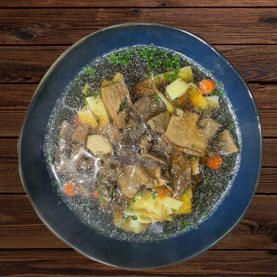 свинина, гриби білі, картопля, квасоля, цибуля, бульйон курячий
