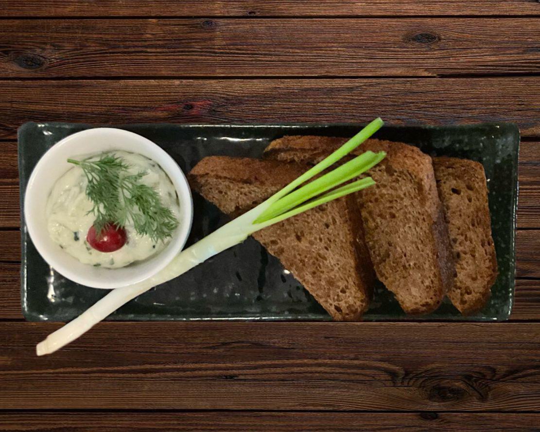 оселедець маринований, сало червоне, чорне, мелене, огірок квашений, буряк маринований,грінки з бородинського та медово-пшеничного хлібу, цибуля, часник