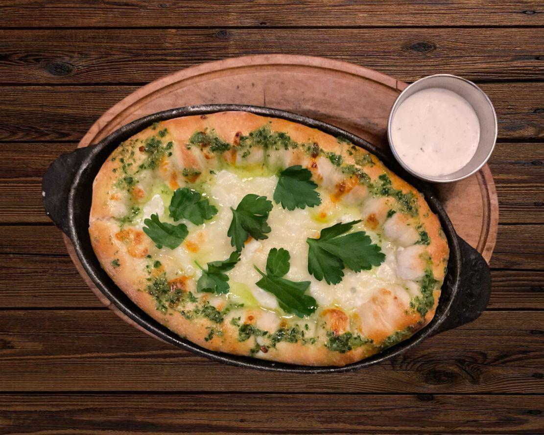сир моцарелла, сулугуні, бринза, вершкова основа, вершково-часниковий соус