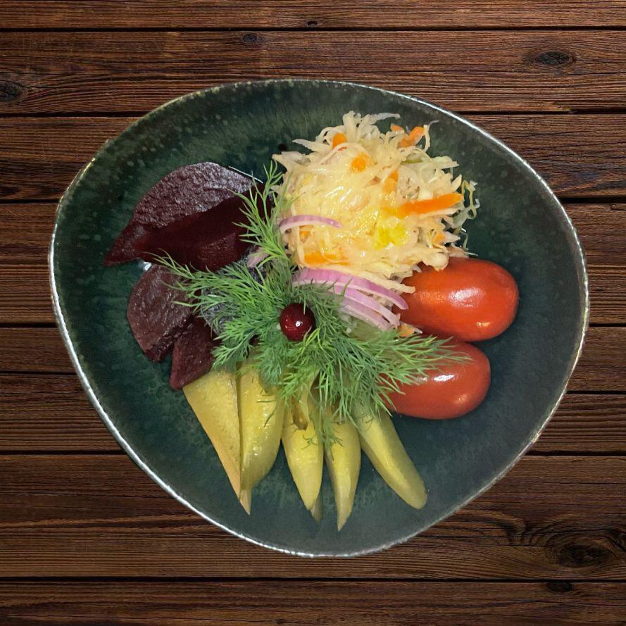капуста, огірок, помідор квашений, буряк, кабачок маринований, зелень