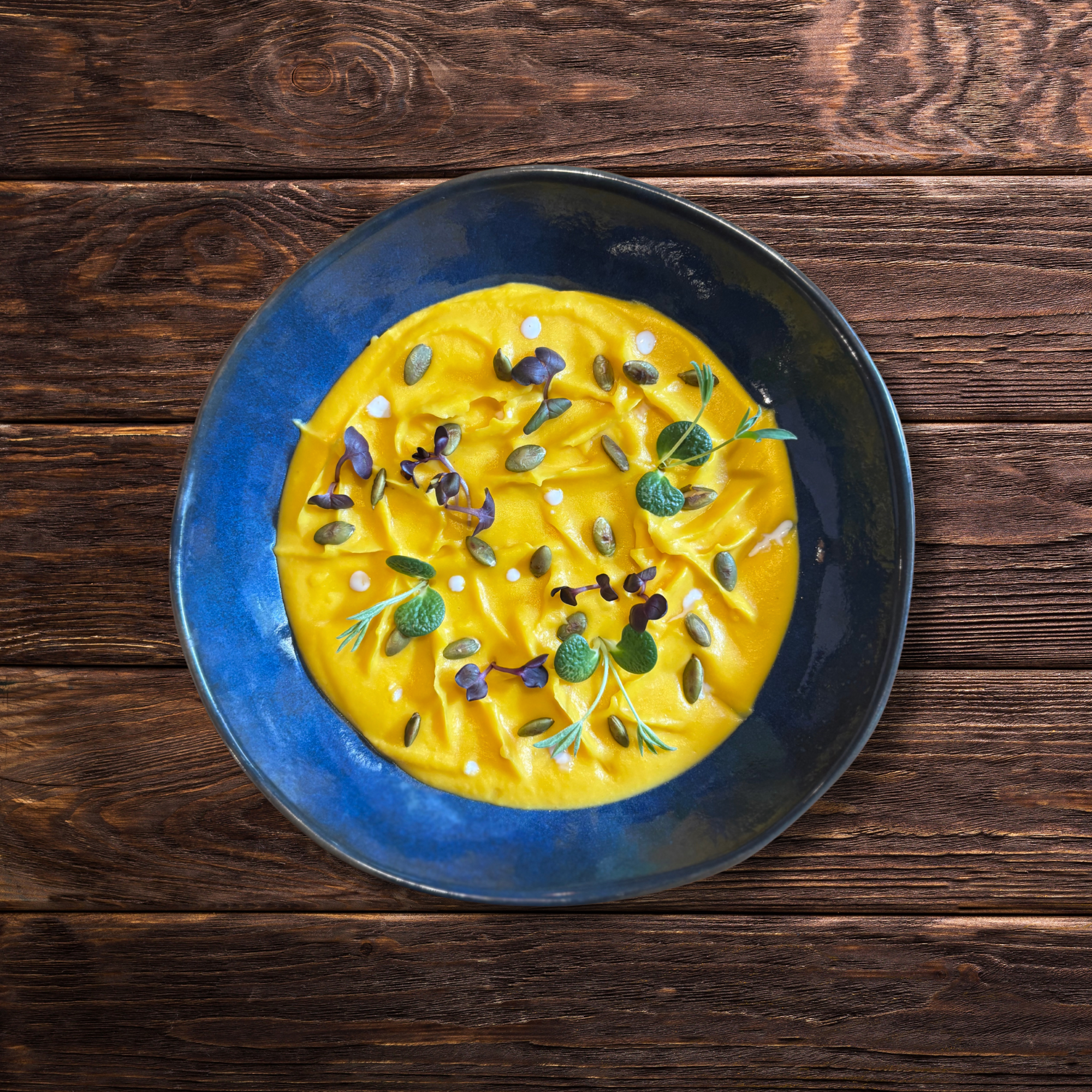Гарбуз, цибуля, морква, корінь селери, вершки, насіння гарбуза